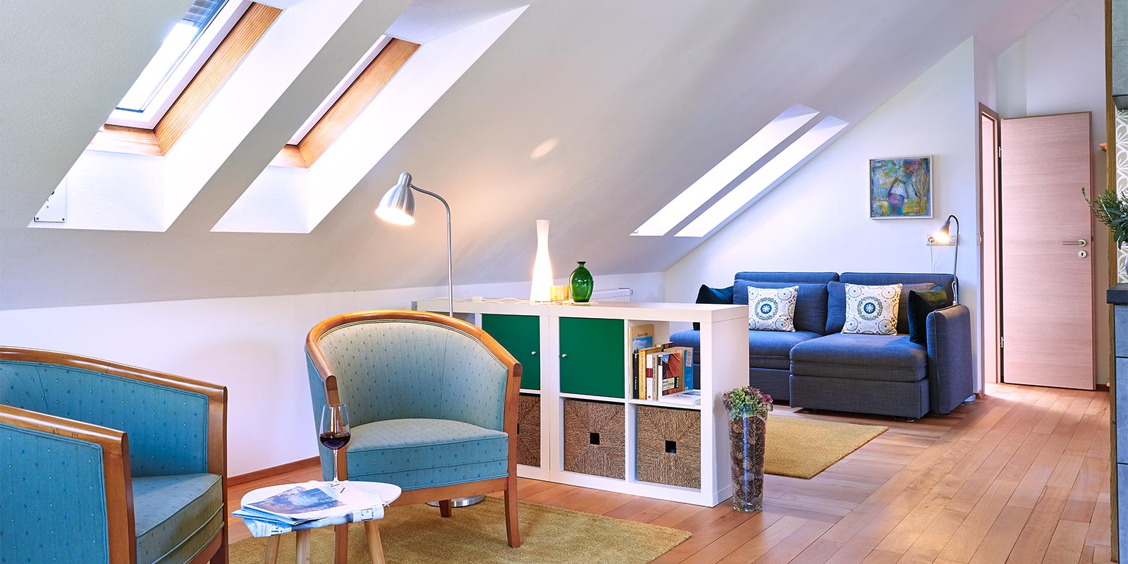 Die gemütliche, neue renovierte Dachwohnung befindet sich im 2. Obergeschoss. Das Haus liegt direkt am Bach, vom Balkon blickt man auf Wiesen, Garten, Bach und Schwarzwaldberge.